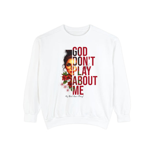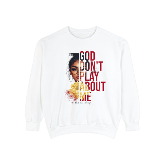 God Don’t Play About Me Premium Fleece Sweatshirt – White